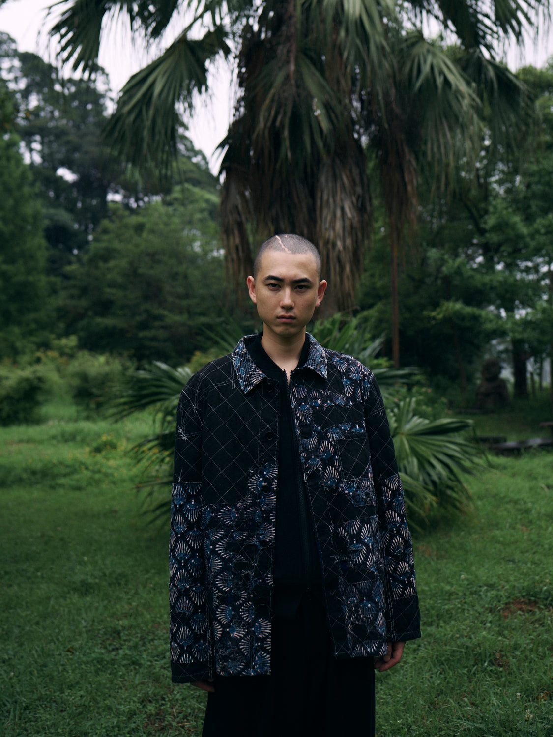 MA05 Flower print lattice stitch storm rider jacket (Lee type)