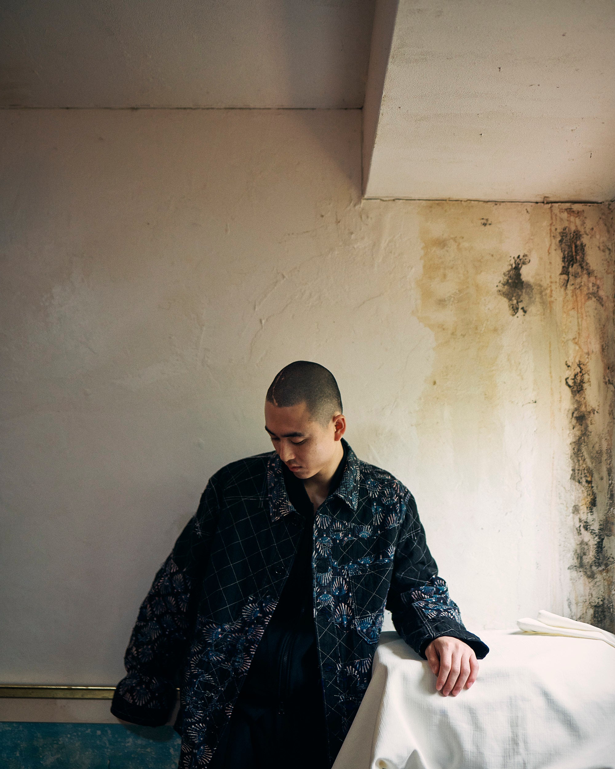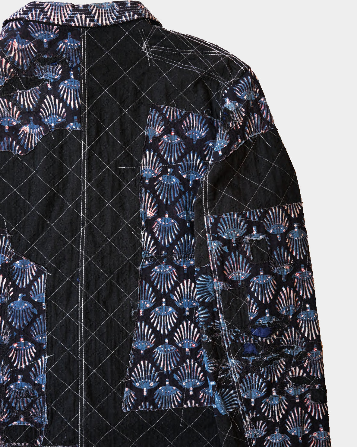 ベースのワークジャケットの破れを修理しつつ、リサイズしてゆとりのあるシルエットに。