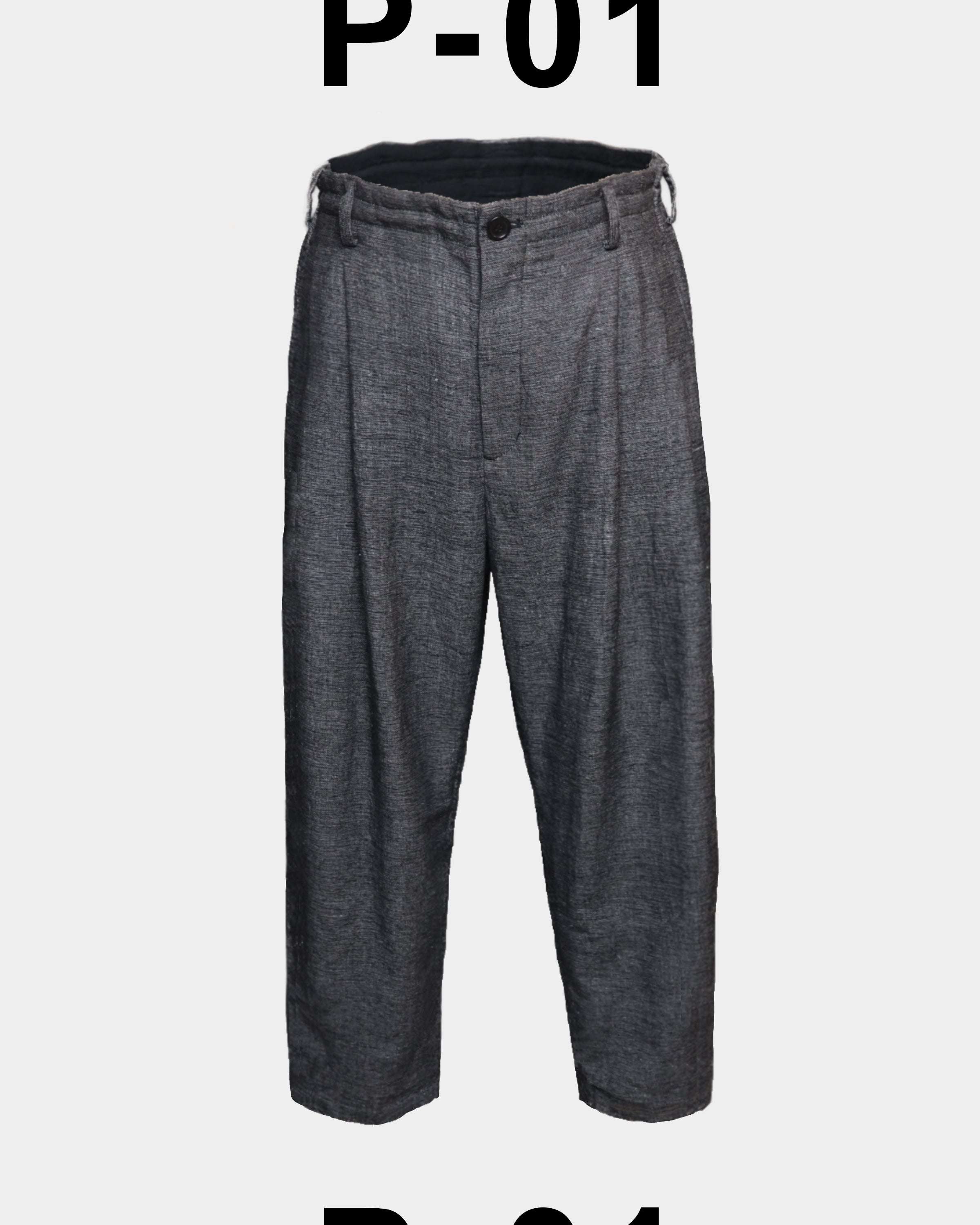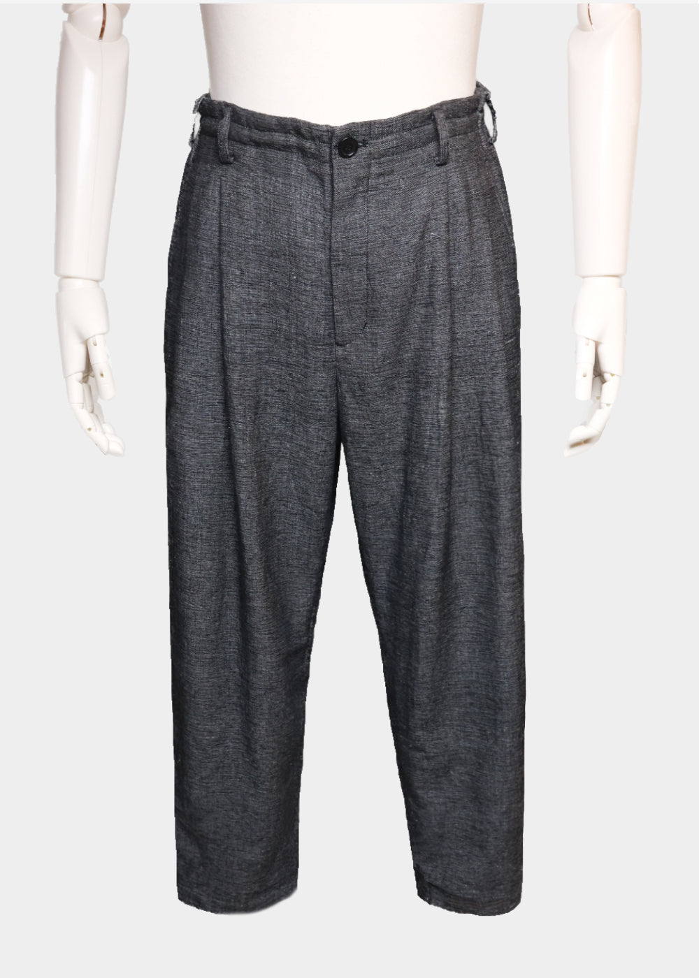 100%綿のインドで織られた手織りのデニム素材を使用した2タックパンツ。