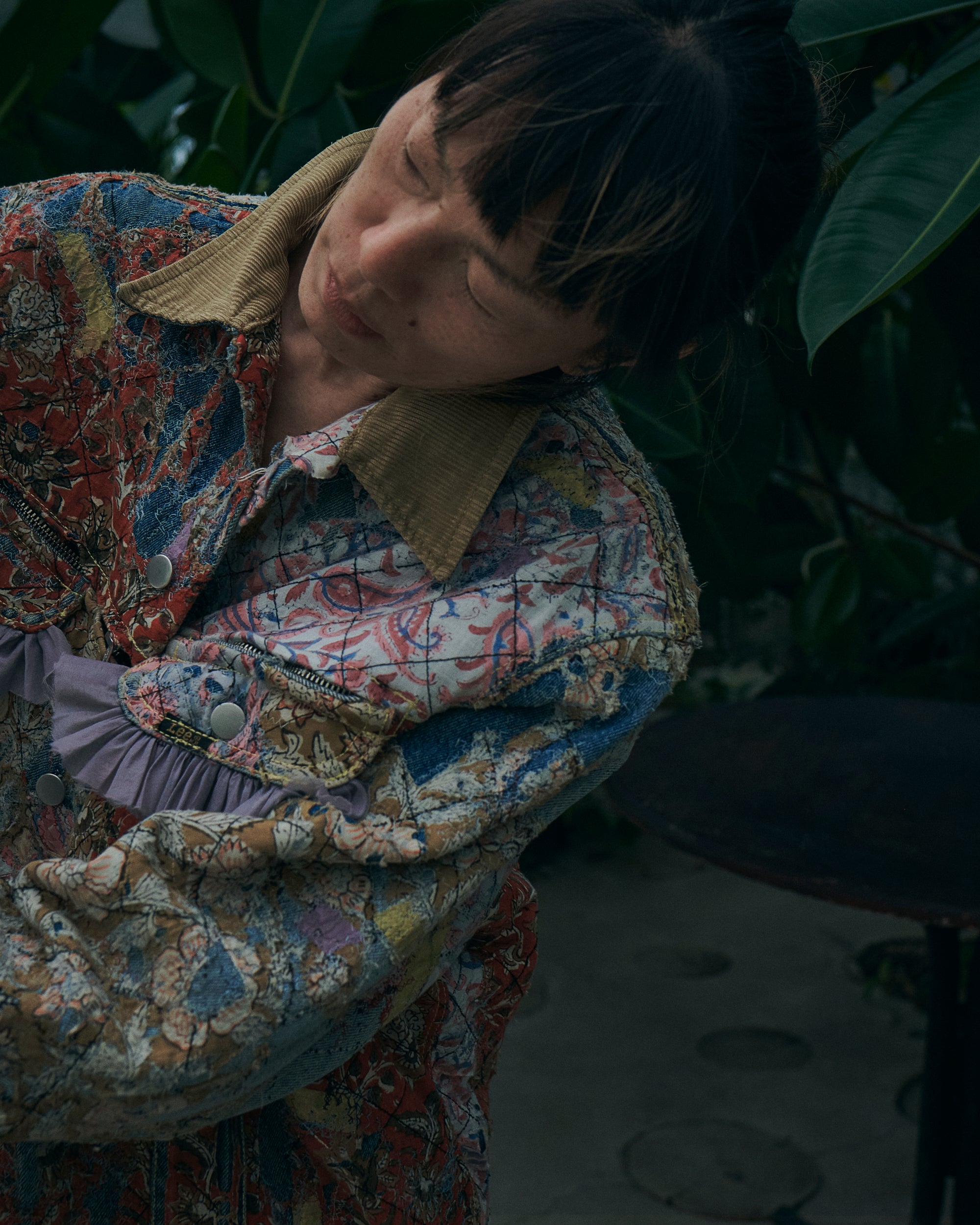MA05 Flower print lattice stitch storm rider jacket (Lee type)