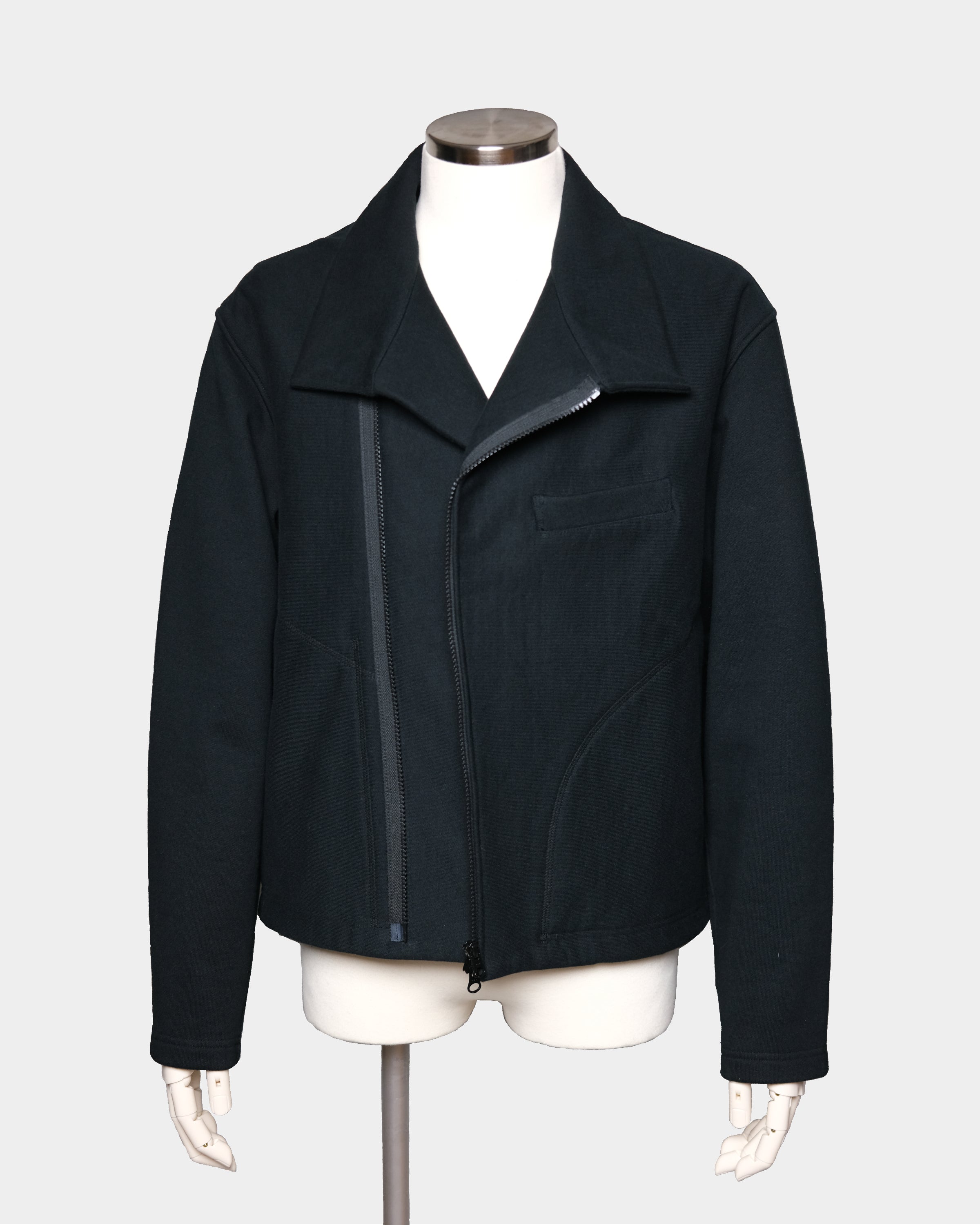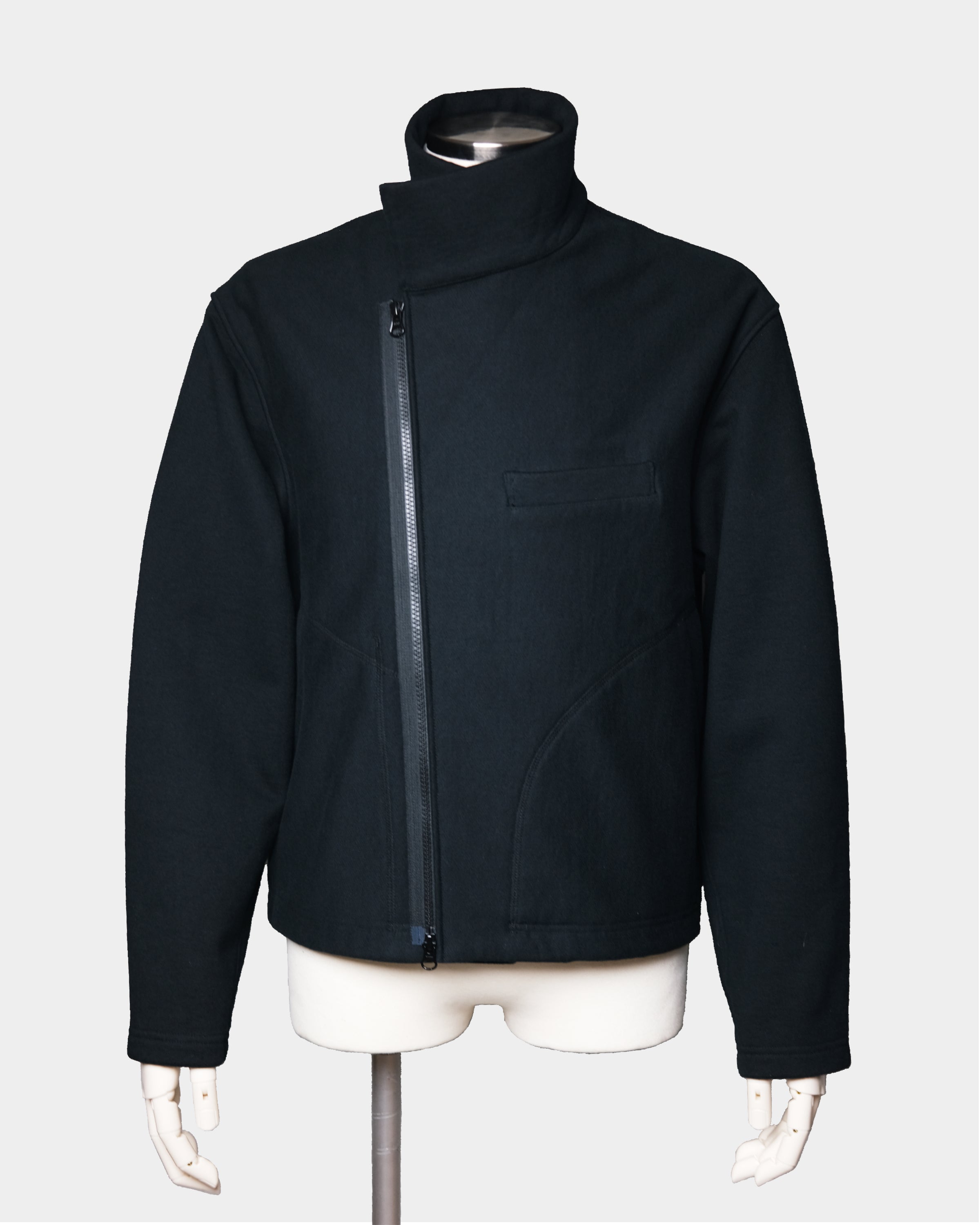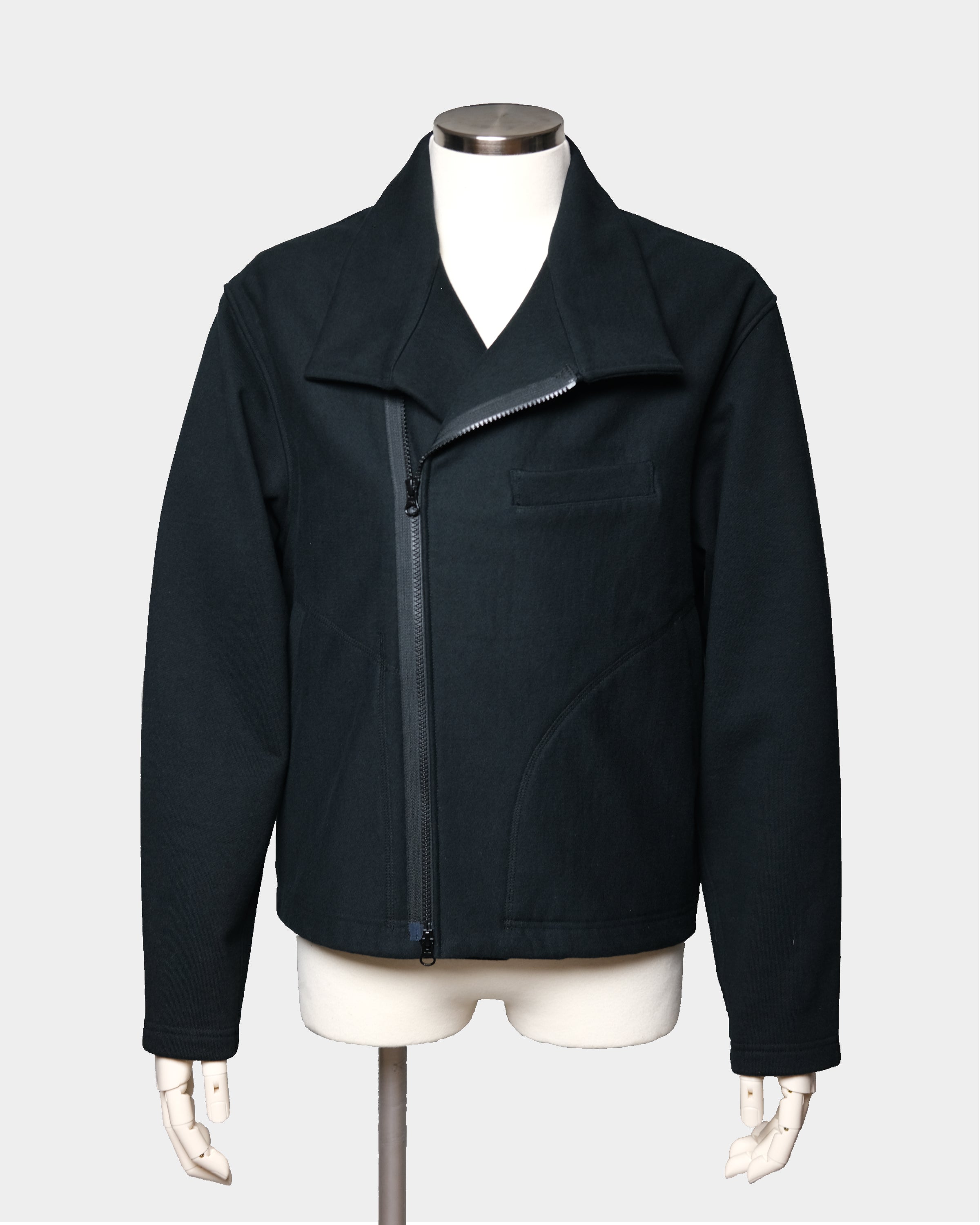 高密度な裏毛を使用したライダース型 ZIPUPリブカーディガン。