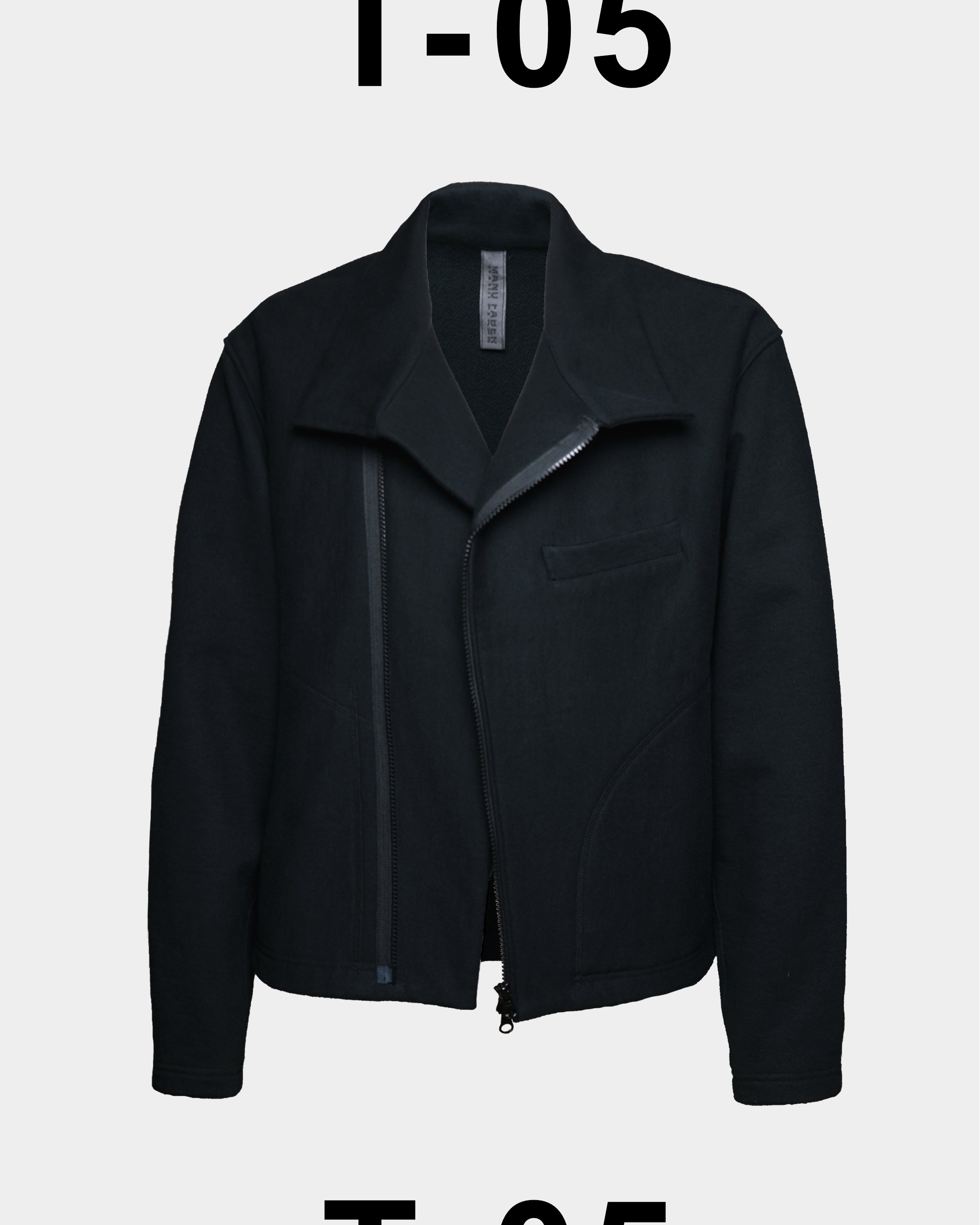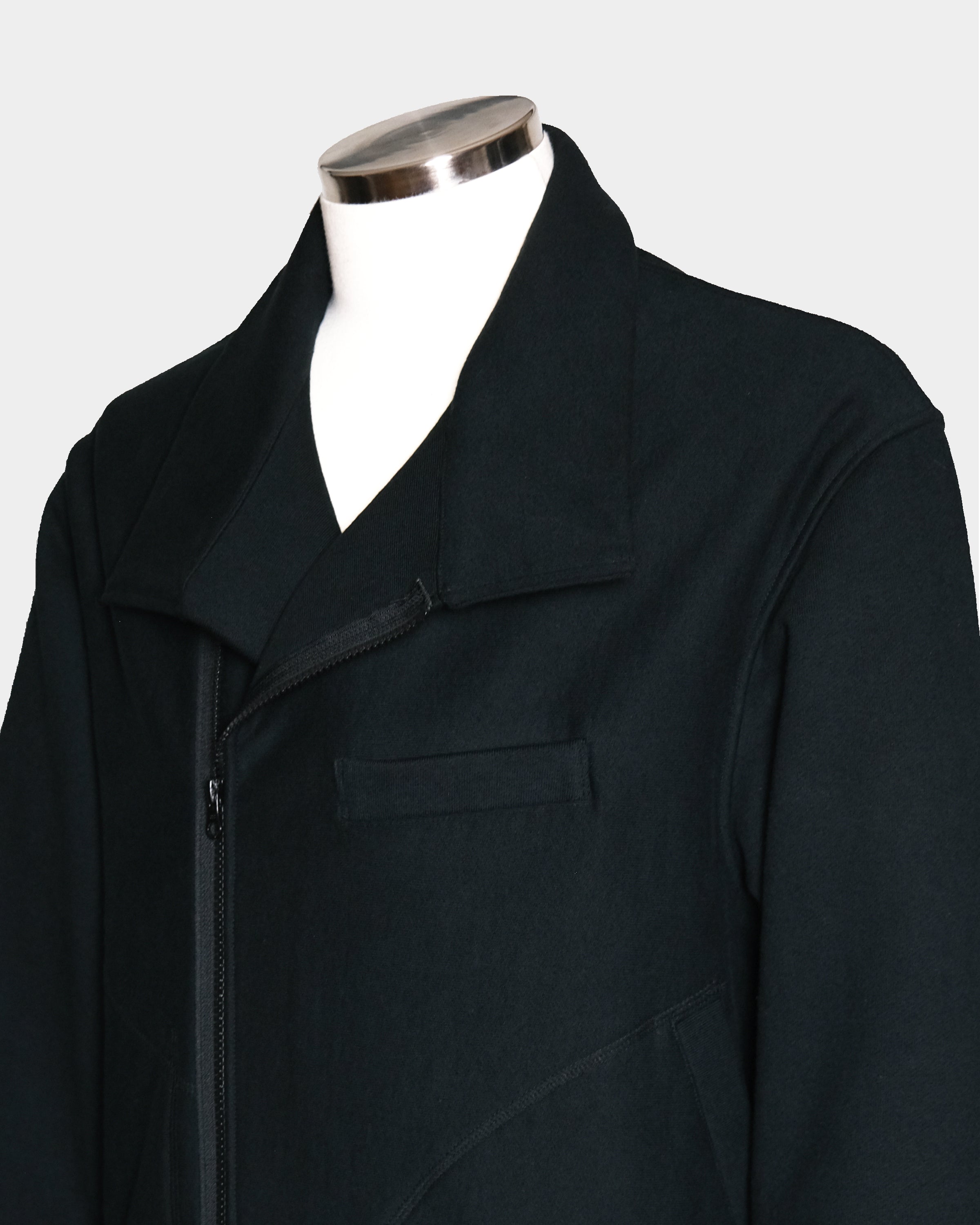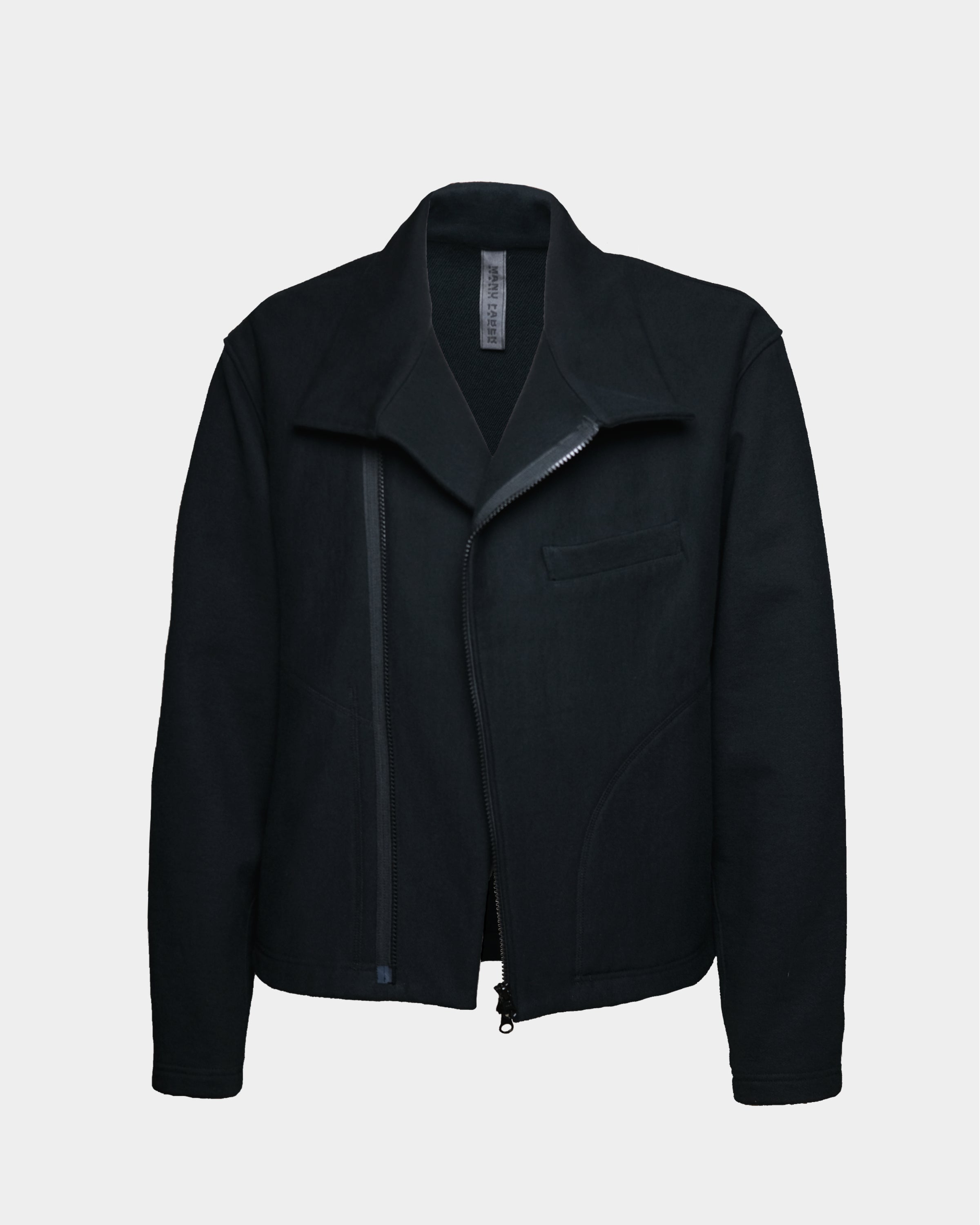 高密度な裏毛を使用したライダース型 ZIPUPリブカーディガン。